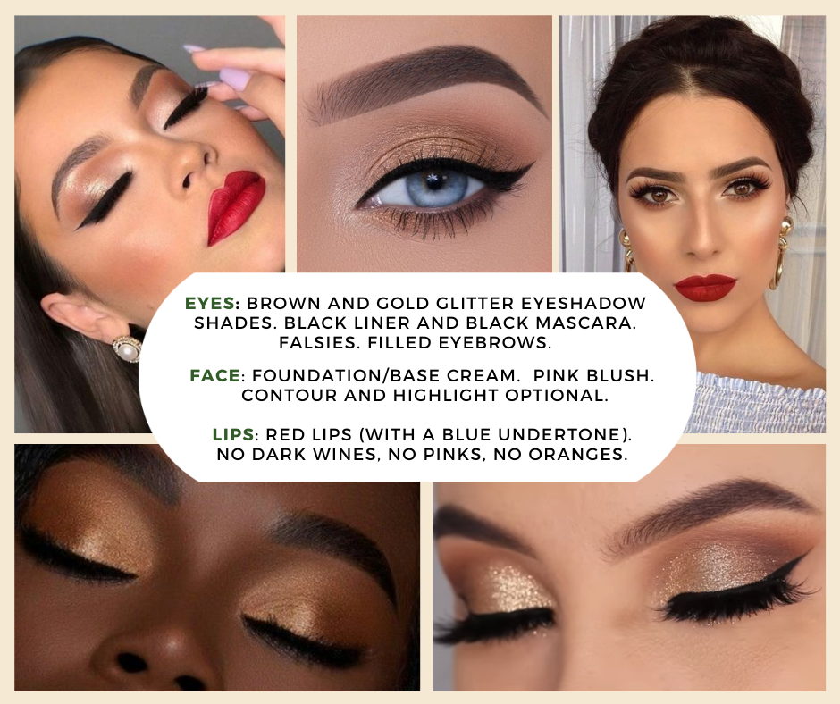 Las mujeres siempre deben usar maquillaje completo para presentaciones. Los bailarines deben tener base, labial rojo, mejillas rosadas, sombra de ojos y pestanas falsas. Recuerda fijar tu maquillaje y meterte la cabeza para evitar que el maquillaje se meta en los vesturios.